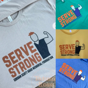 Our exclusive Serve Strong, ultra soft-style t-shirts are available through our local vendor Tatum-Rose Graphics. The shirts are available in both dtf transfer (vinyl) and sublimation (soft retro) in a variety of diverse colors. Click the t-shirt graphic below to visit the t-shirt shop!